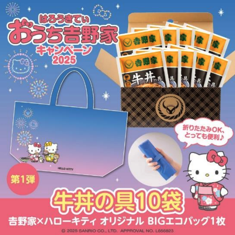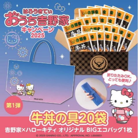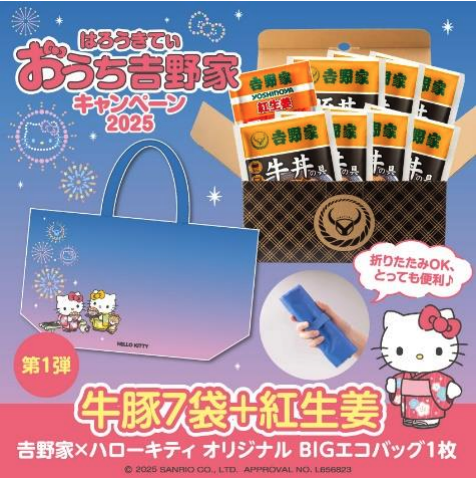 株式会社吉野家(本社:東京都中央区 代表取締役社長 成瀨哲也、以下吉野家)は、7月1日(火)から8月31日(日)までの期間、公式通販サイトおよび公式特設サイトにて、吉野家×ハローキティ『おうち吉野家キャンペーン2025』を開催します。今年でコラボ9回目となる本キャンペーンでは、公式通販サイトでの限定グッズ付きセットの販売やキャンペーンサイトでのレシートマストバイキャンペーンを実施します。